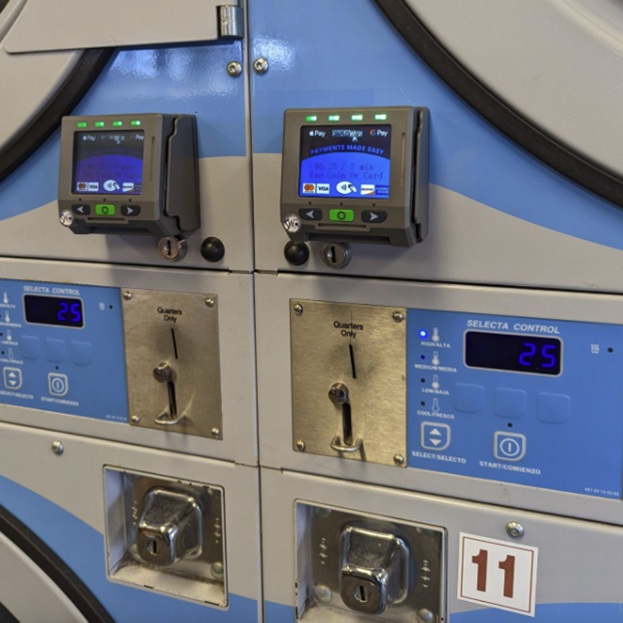 We offer a variety of machines from single load to our 88-pound capacity washers. You will be able to wash your biggest Queen or king-size comforters and more! All of our machines now accept credit/ debit cards. If you prefer to pay with cash, we are now offering our customers loyalty cards that can be loaded with any amount.